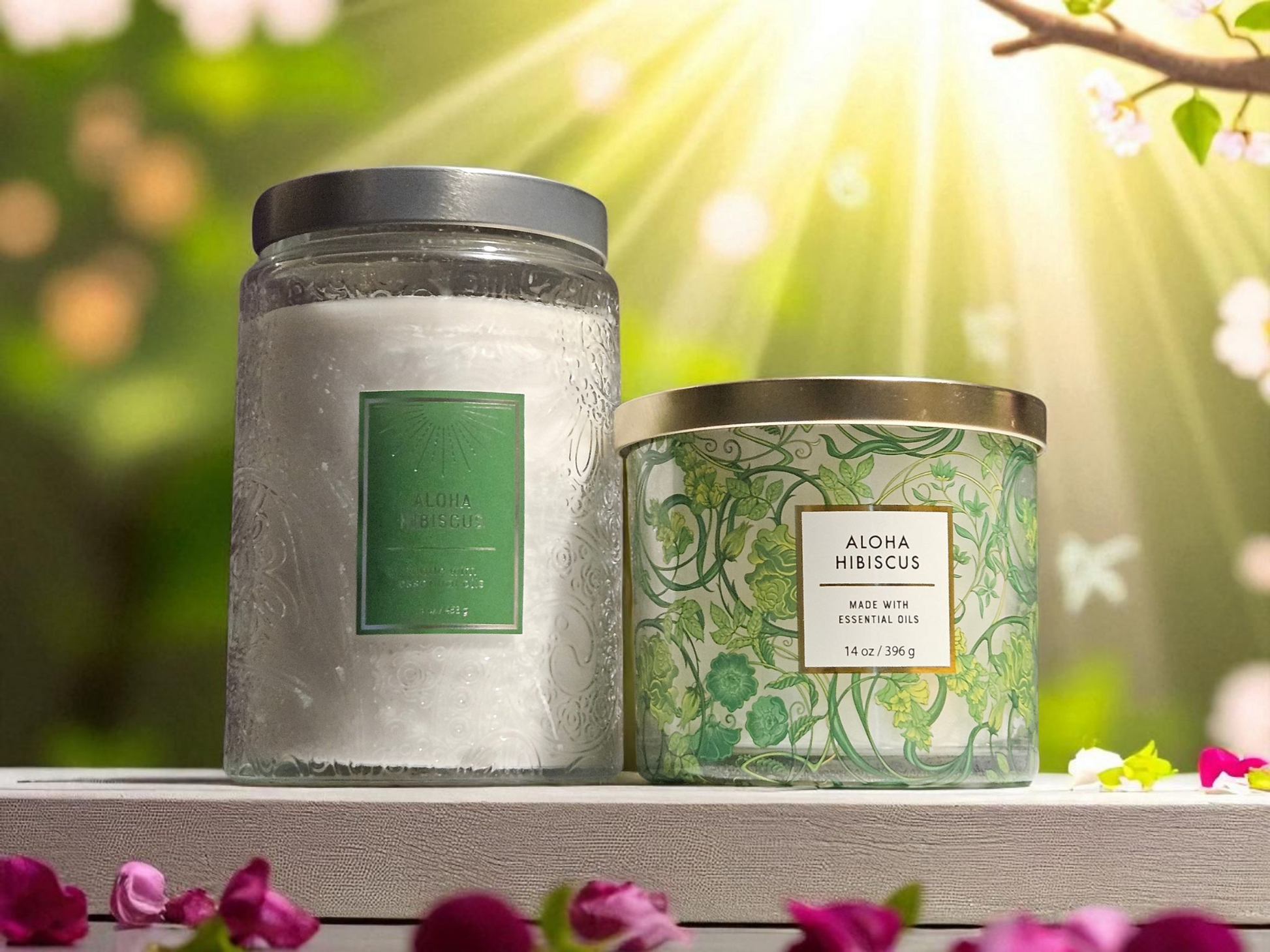 Sets includes 1 16 oz & 1 14 oz Candles. Aloha Hibiscus and White Sandalwood