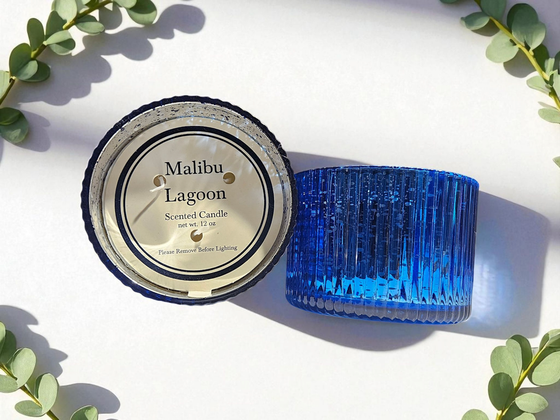 12 oz 3-wick candle. Glossy blue. Citrus scented